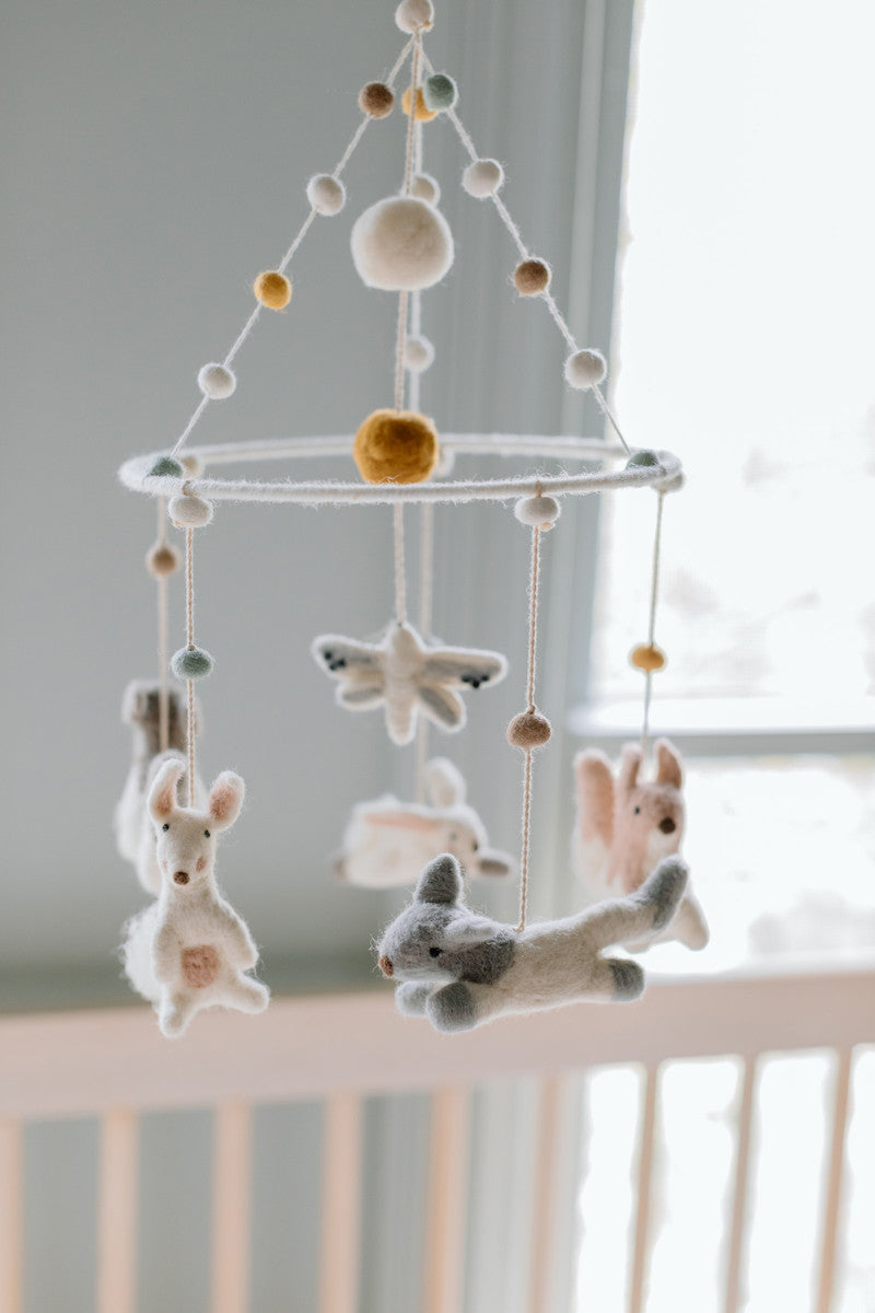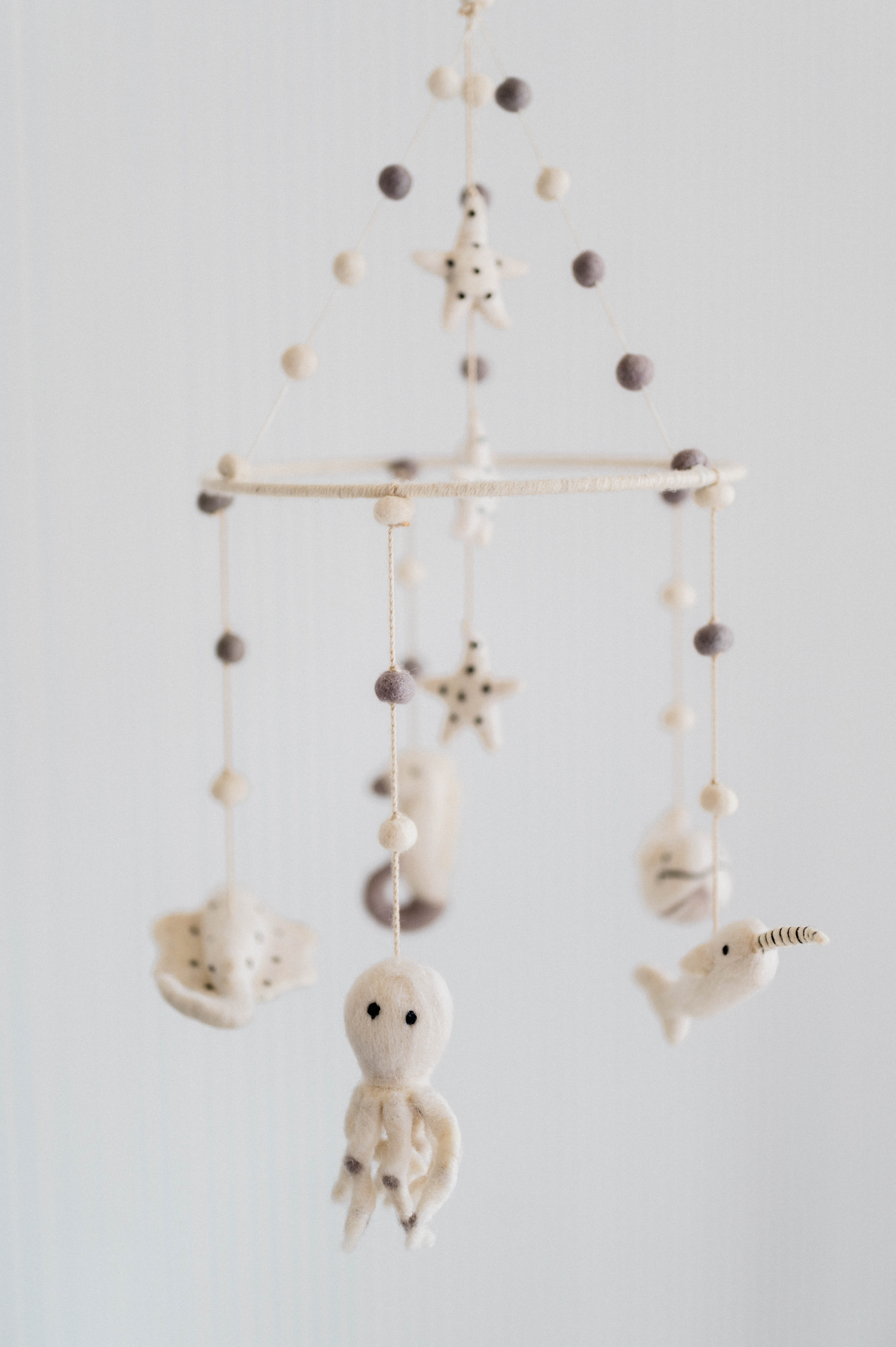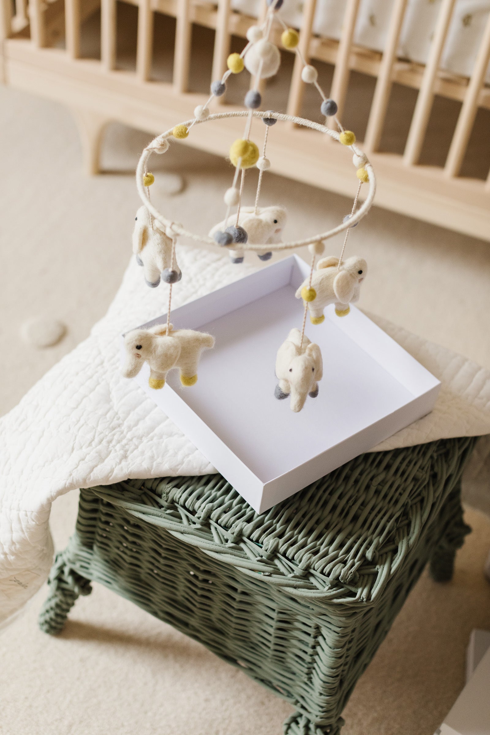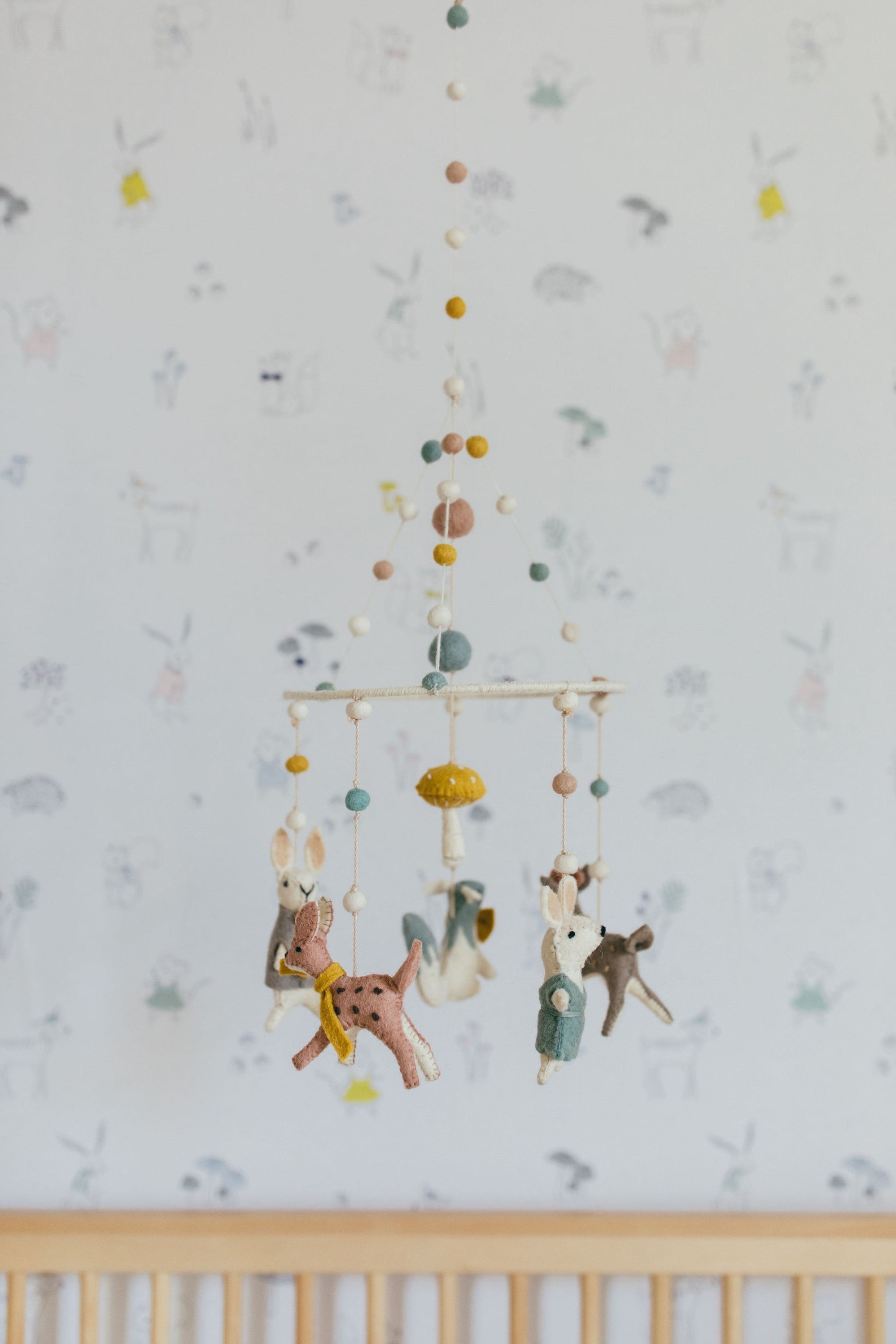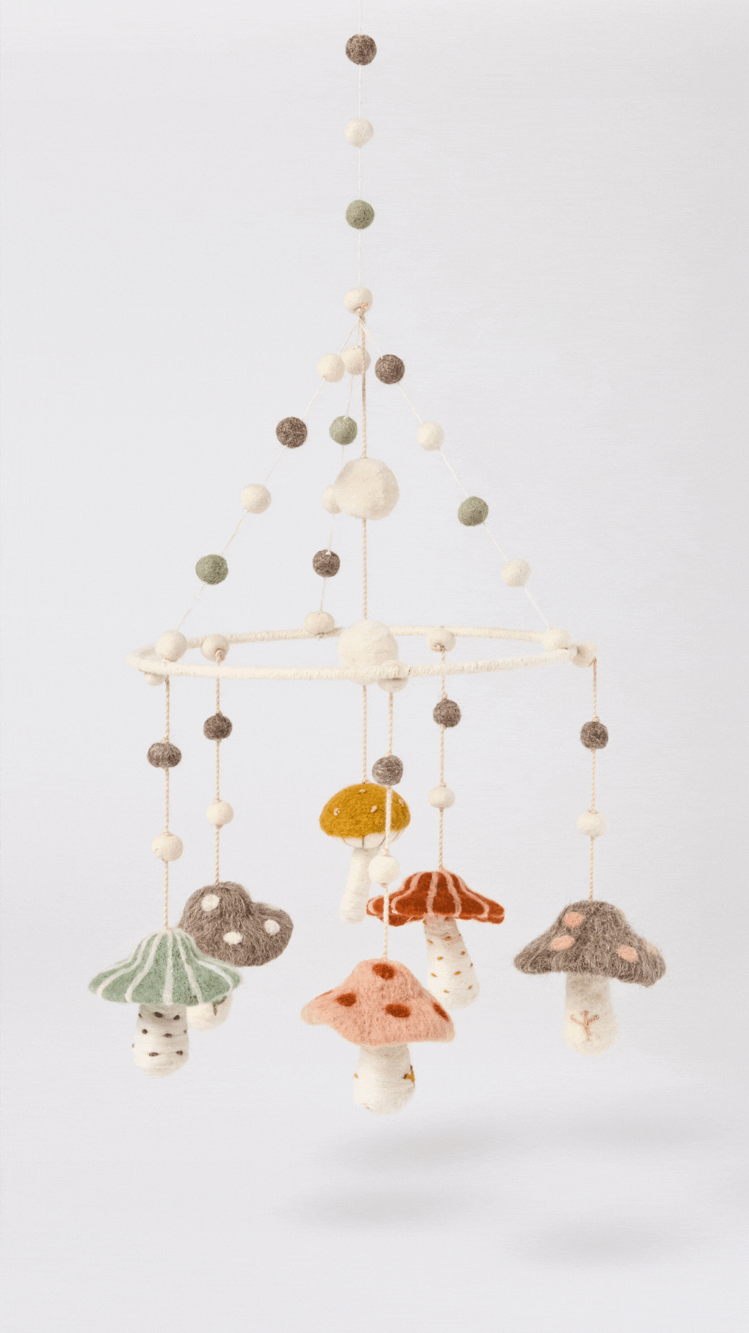 Each mobile is meticulously crafted from 100% wool and colored with gentle, AZO-free dyes for a natural, baby-safe finish.