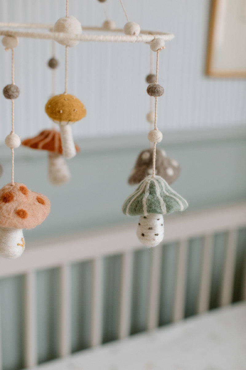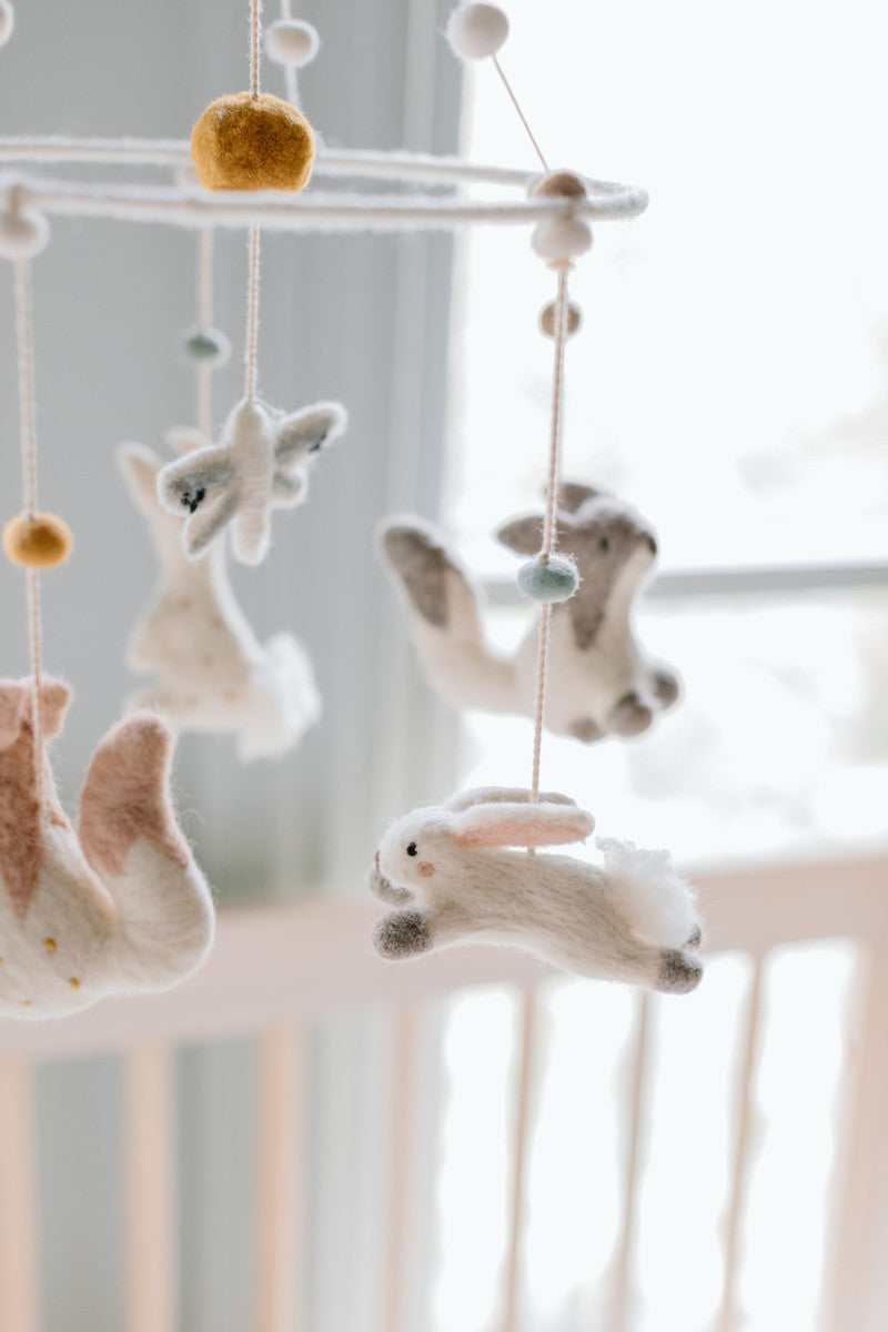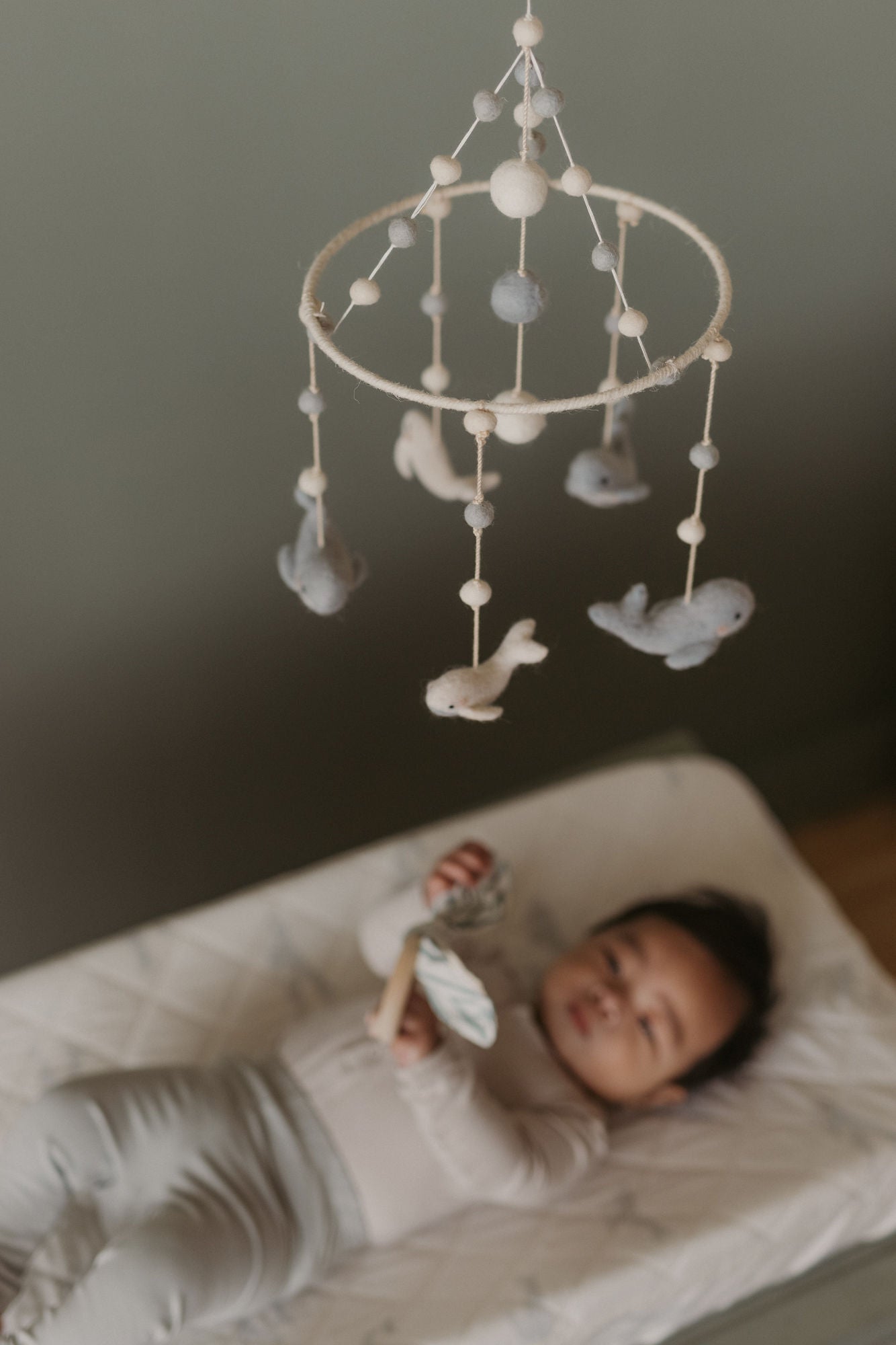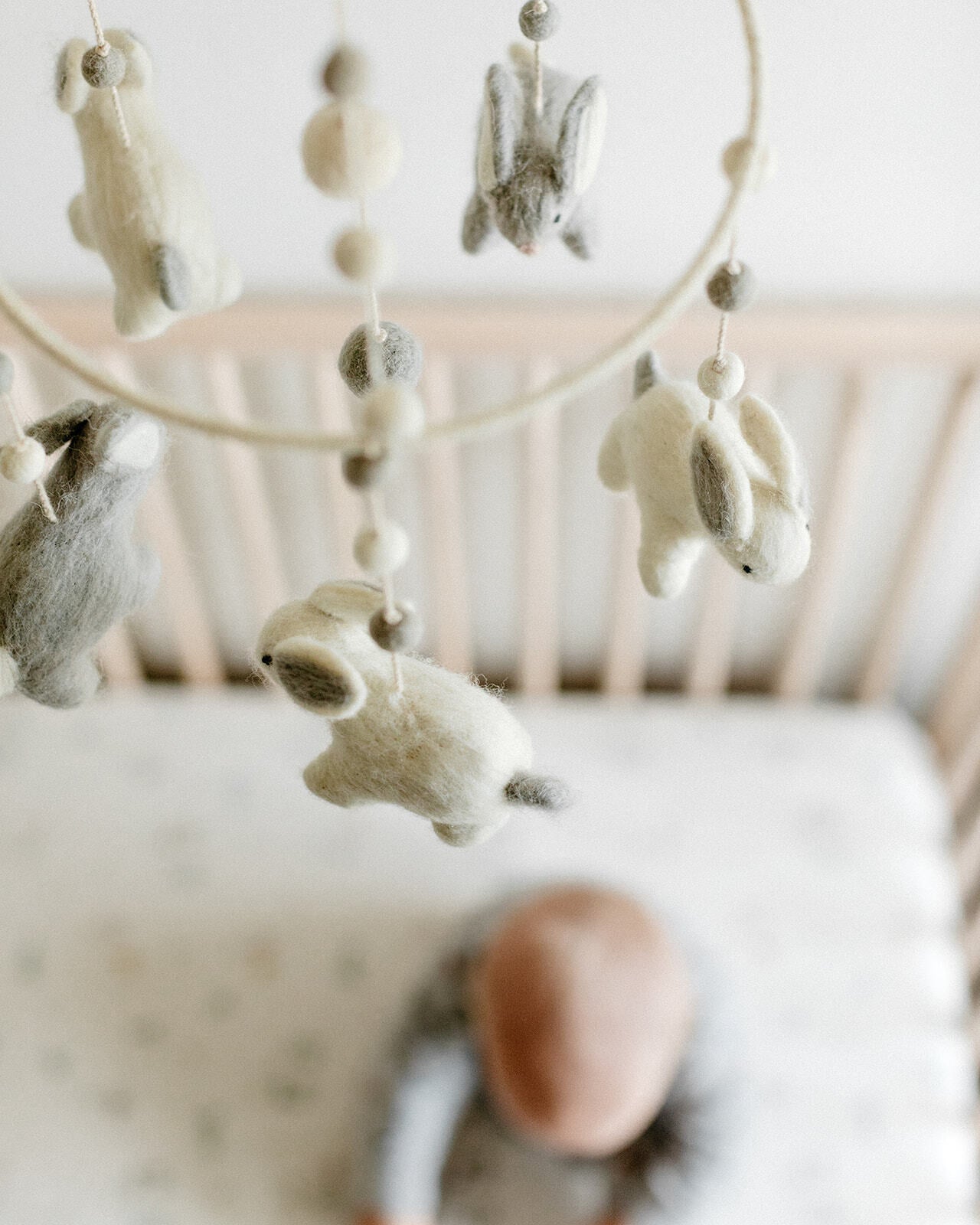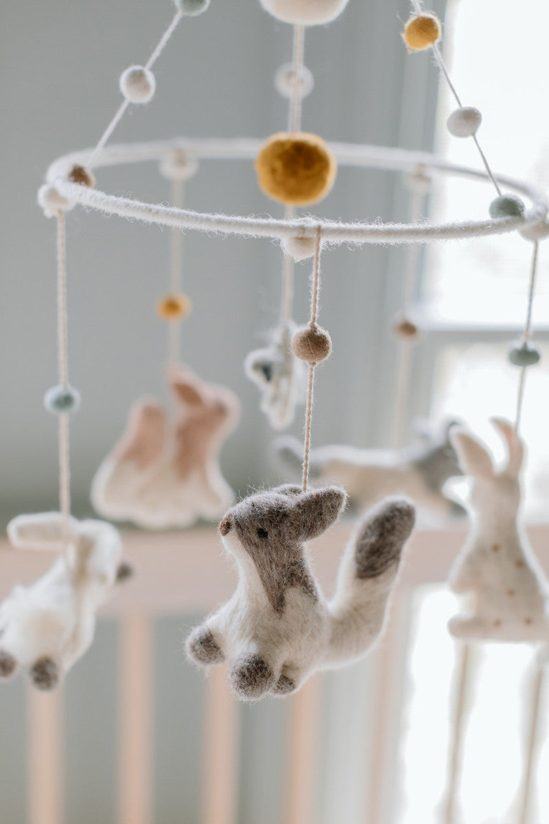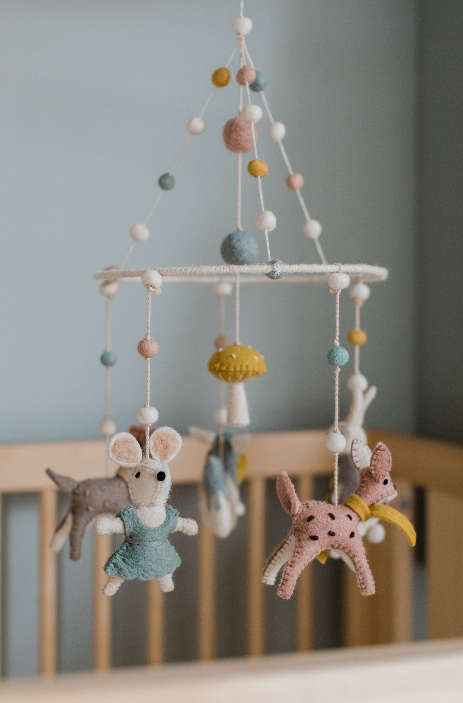 Each mobile is meticulously crafted from 100% wool and colored with gentle, AZO-free dyes for a natural, baby-safe finish.