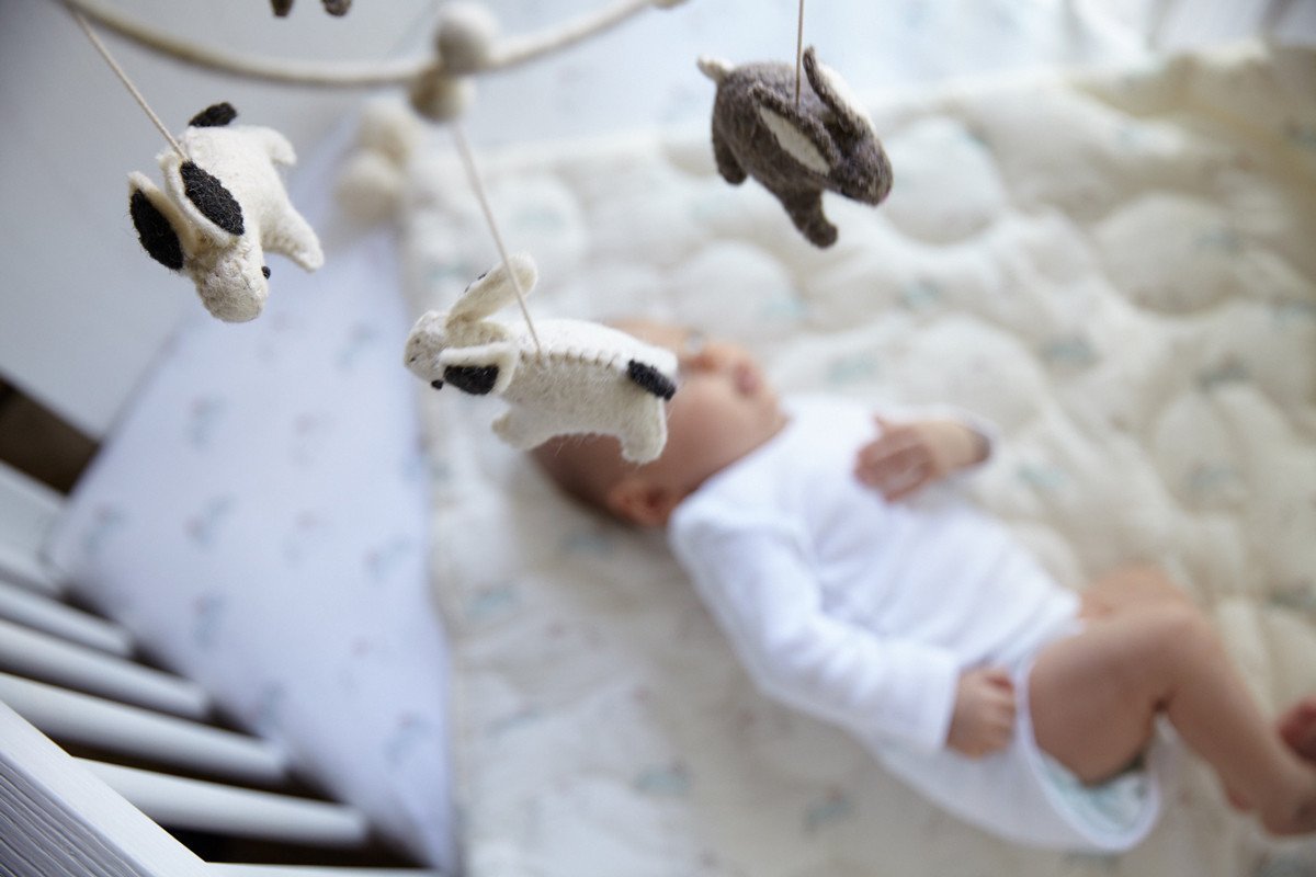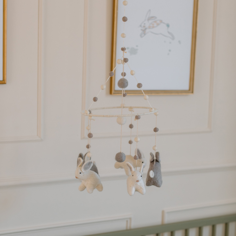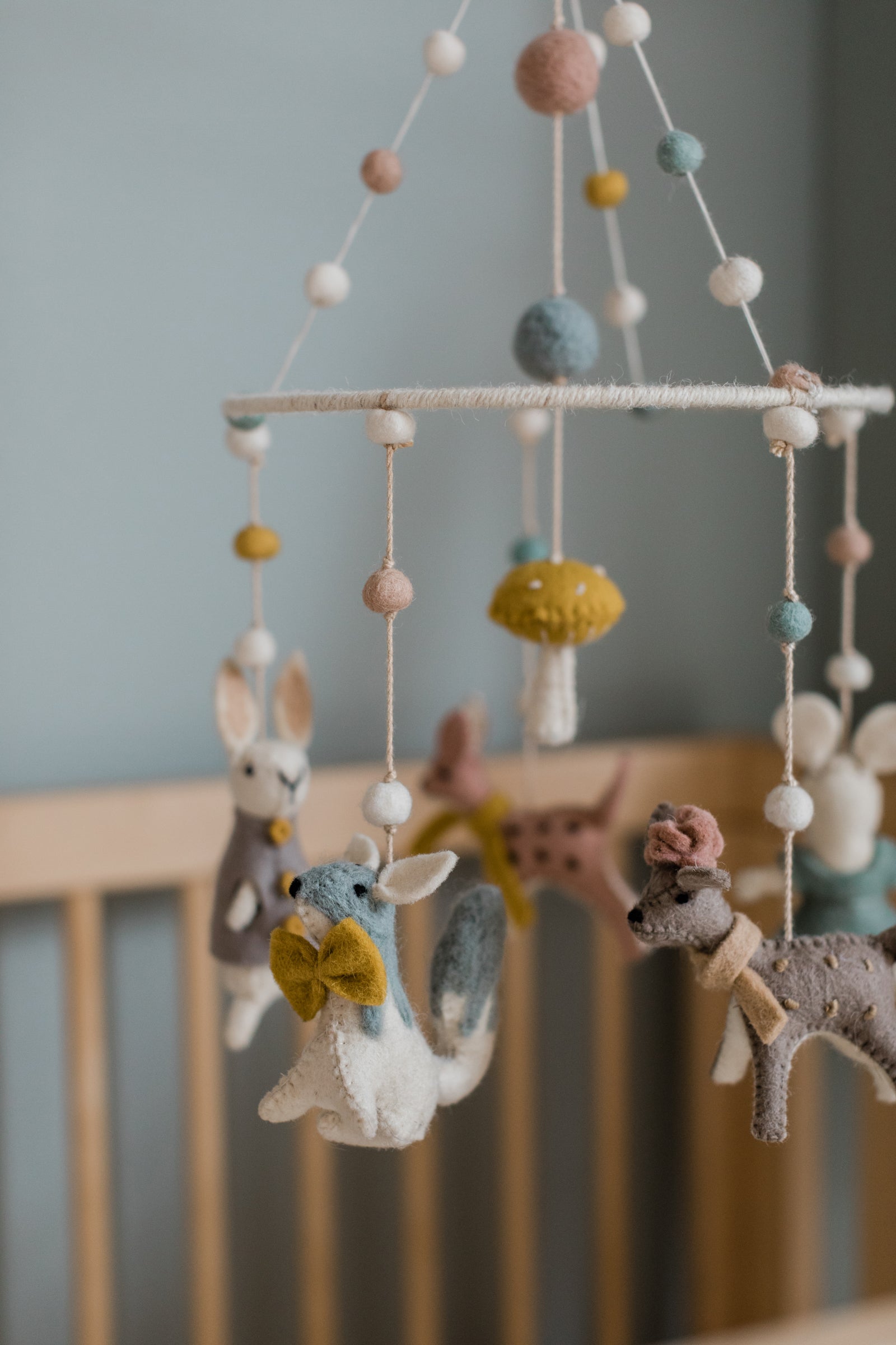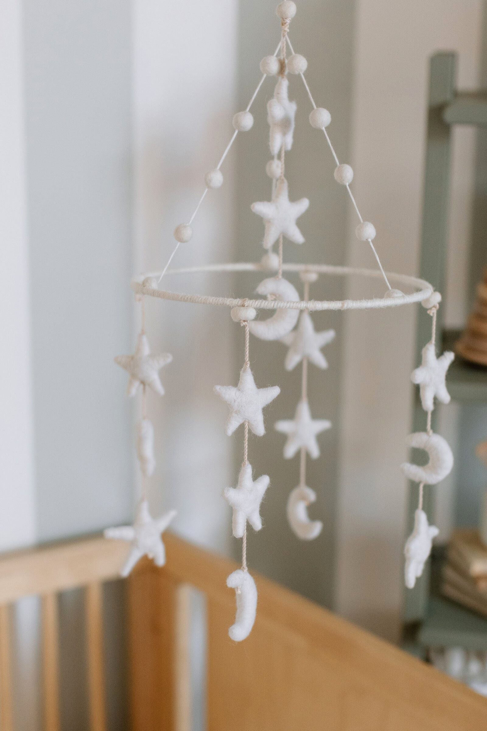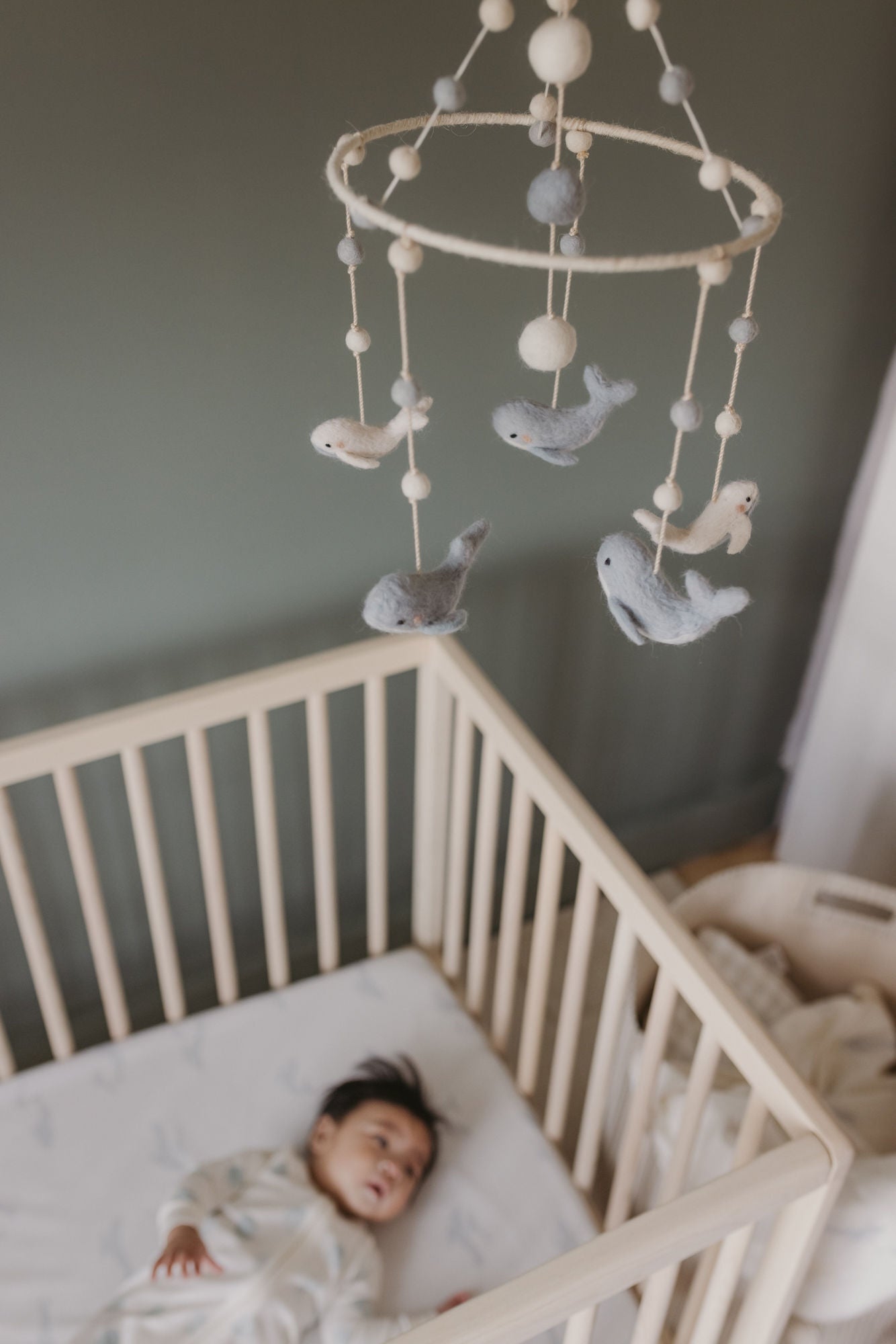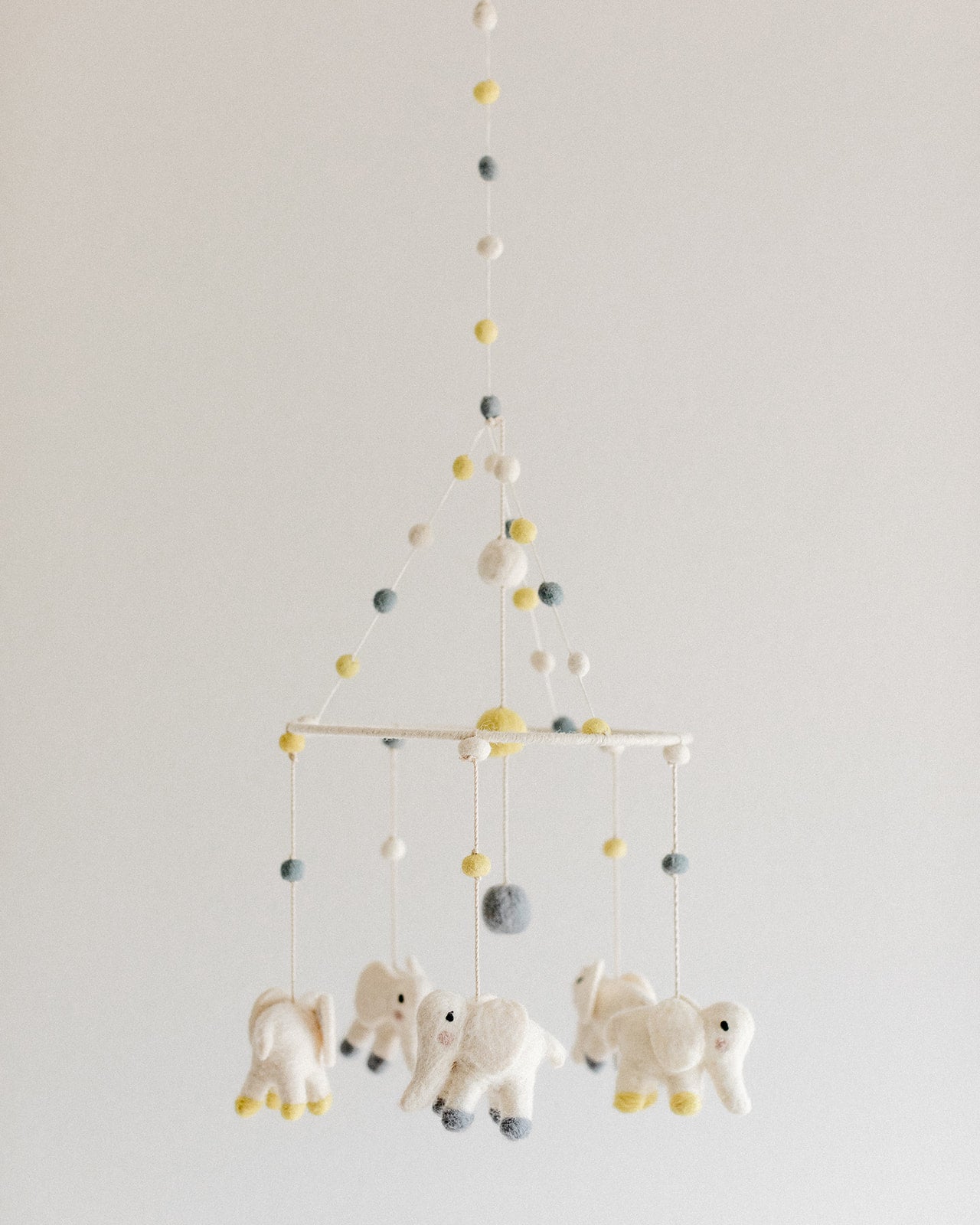 Each mobile is meticulously crafted from 100% wool and colored with gentle, AZO-free dyes for a natural, baby-safe finish.