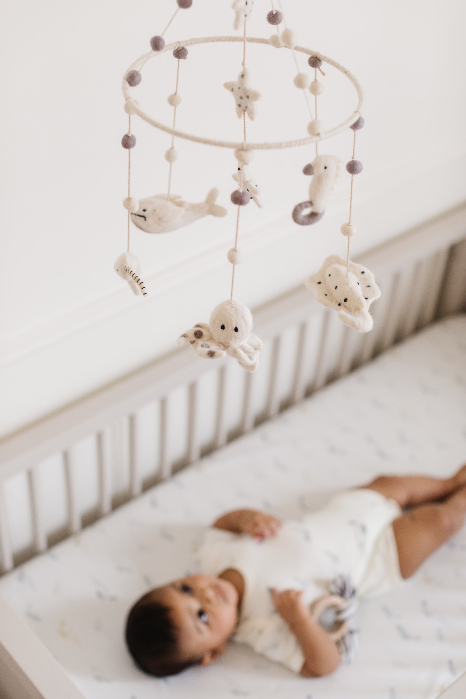 Add a touch of charm to your little one’s nursery with our Classic Mobile, a beautifully handmade wool baby mobile crafted with soft, AZO-free dyes. Each piece is a unique work of art, adding gentle character and thoughtful design to your nursery décor. Gift-ready and lovingly made, this timeless baby mobile brings personality and warmth to any space. Complete your nursery with the matching crib sheet and play mat.