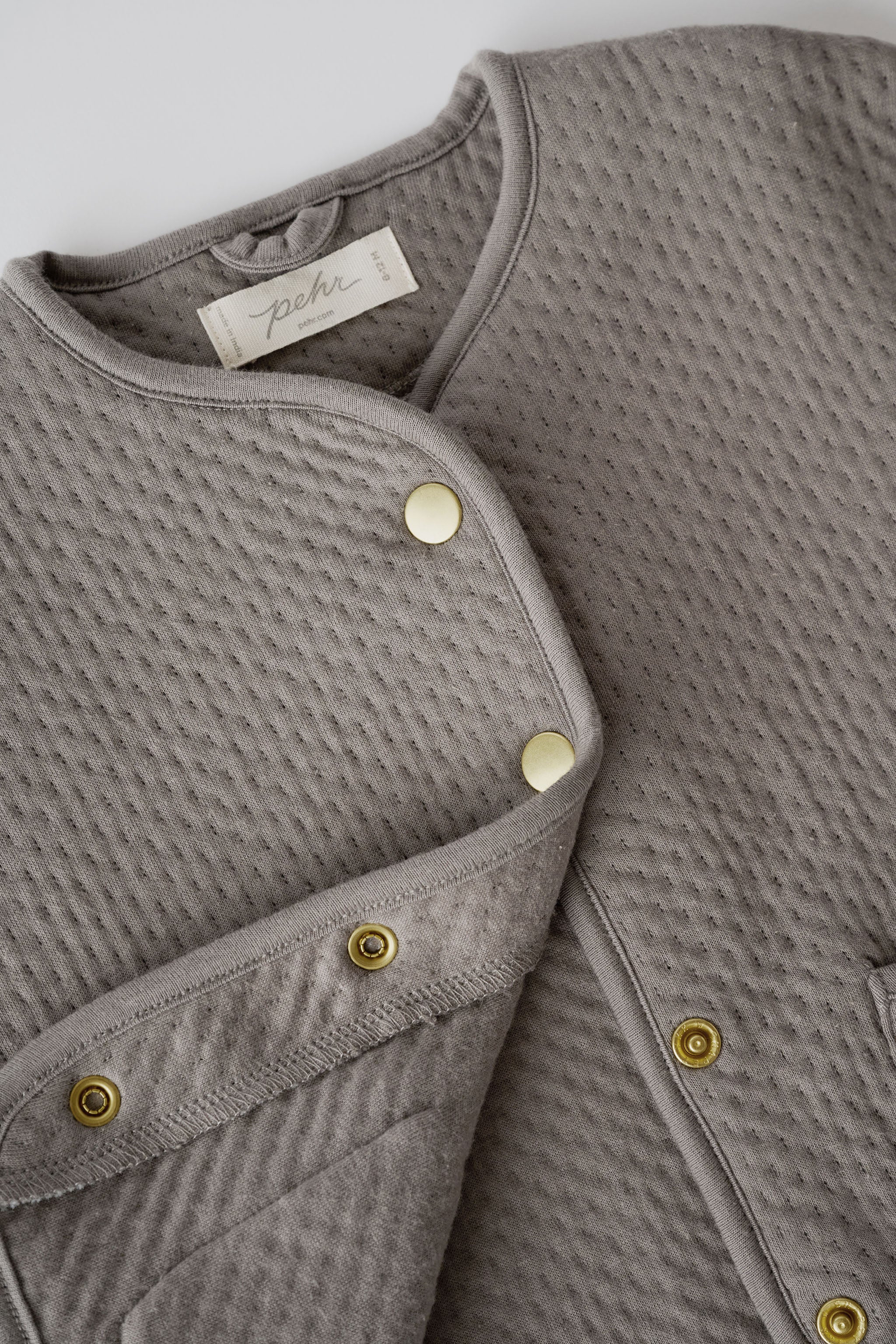 A cozy layer designed for every chilly day. The Cloud Jacket combines the feel of a sweater, cardigan and coat in one, made from our softest, quilted fabric that feels light as air. With a relaxed fit, ribbed cuffs and easy brass snaps, it’s designed for all-day comfort and quick on-and-off. Finished with sweet front pockets, it’s the perfect piece to mix, match and wear all season long. Pehr with our Cloud pants for a matching set.