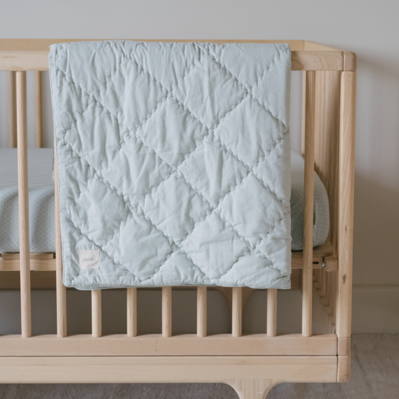 Baby's first must-have nursery accessory. Made from GOTS certified 100% organic cotton with a 180 GSM cotton filling, our Pin Dot Quilted Blanket is the perfect layer for tummy time, stroller rides, or snuggles. Hand-stitched quilting and soft all-over pin dots add a gentle, timeless charm. Available in three baby-perfect hues Peony, Sea, and Pebble, Pehr with our Pin Dot Crib sheet, Pin Dot Swaddle, and Stargazer Mobile for a coordinated nursery look.