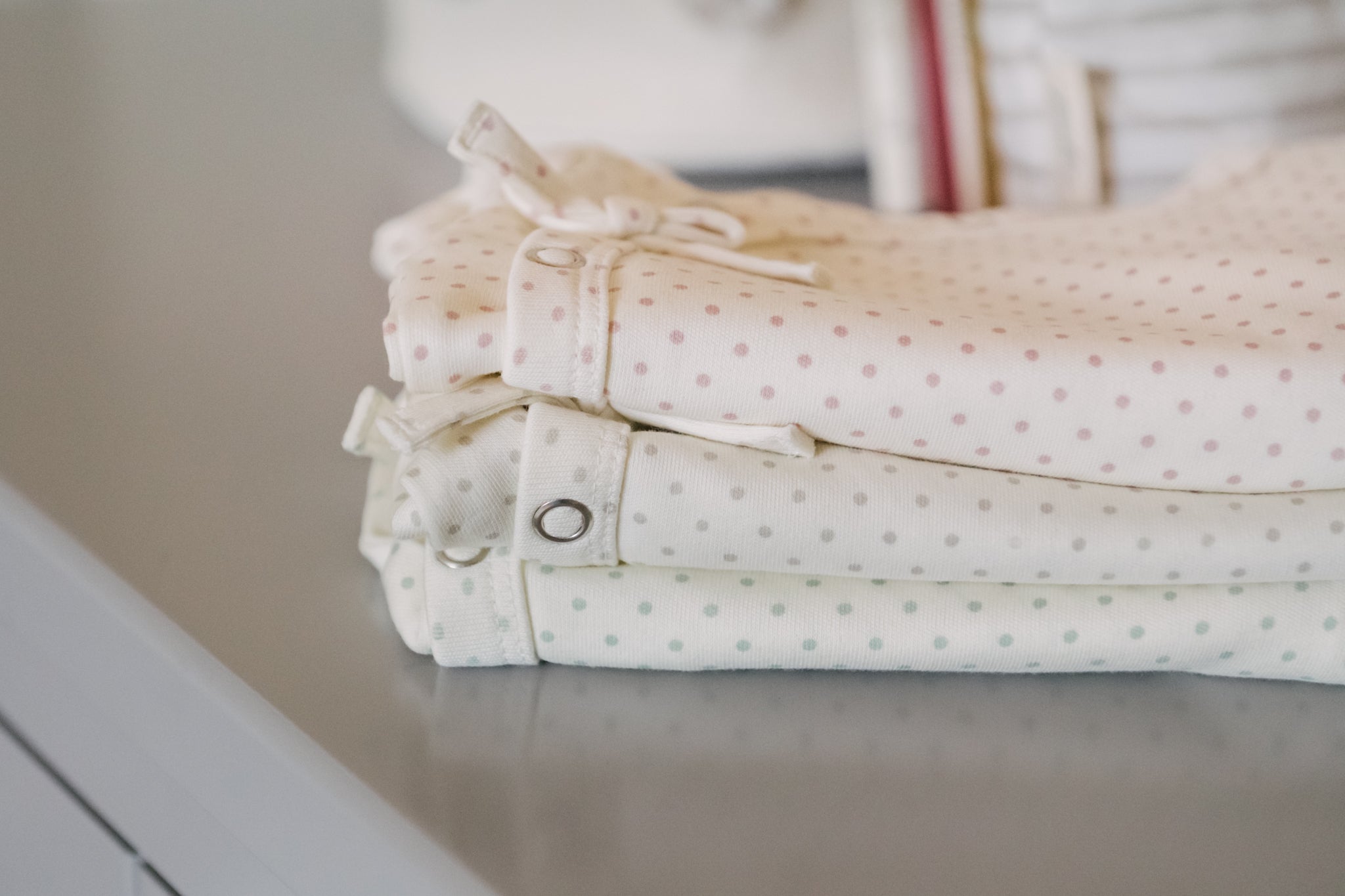 A timeless nursery collection featuring soft hues and small, delicate polka dots, bringing vintage-inspired charm to every piece.