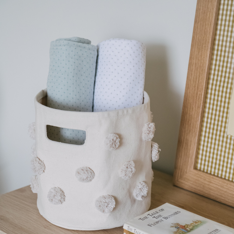 A timeless nursery collection featuring soft hues and small, delicate polka dots, bringing vintage-inspired charm to every piece.